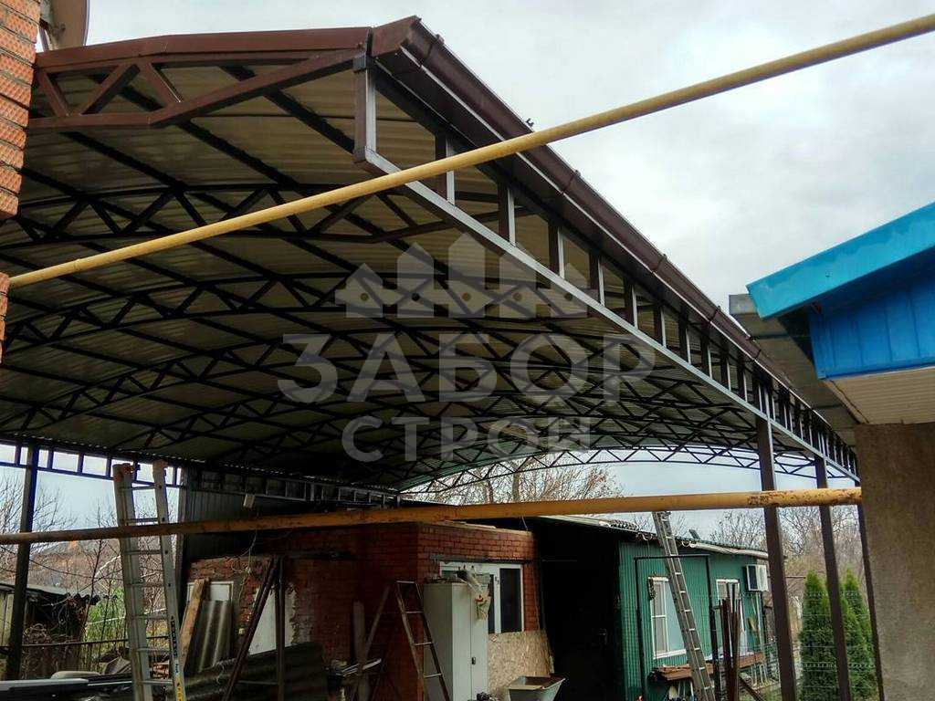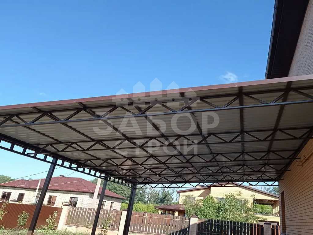 Поэтому компания "НавесСтрой" настоятельно рекомендует не экономить, а усилить каркас навеса из профнастила более жёсткими профилями с увеличенной толщиной металла и количеством несущих ферм.